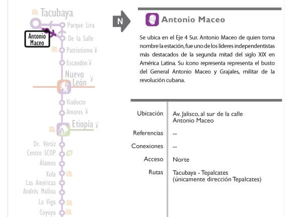 La mayoría de estas estaciones se encuentran a tres minutos caminando para llegar a la estación del Metrobús Antonio Maceo en Miguel Hidalgo.